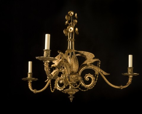 Victorian gilt bronze three-light chandelier with "Parrot" motif, England, circa 1850